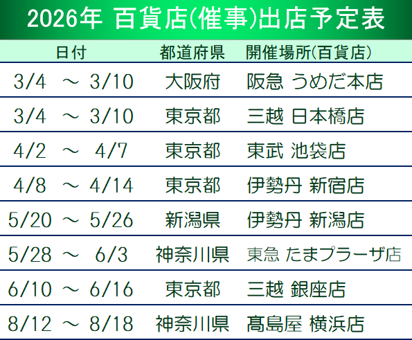 全国百貨店での催事のお知らせCAMPAIGN